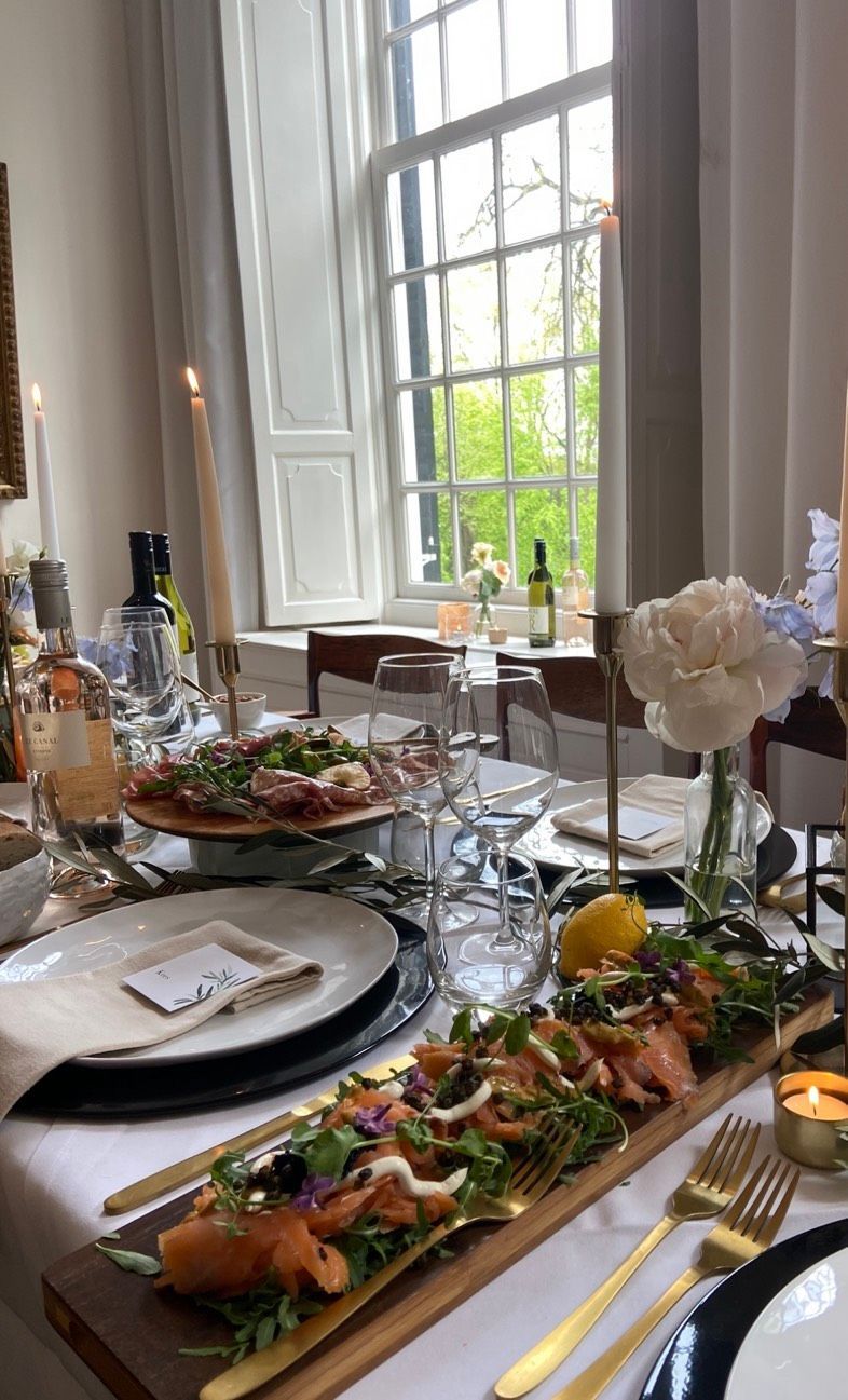• Servies, bestek en glaswerk passend bij het concept